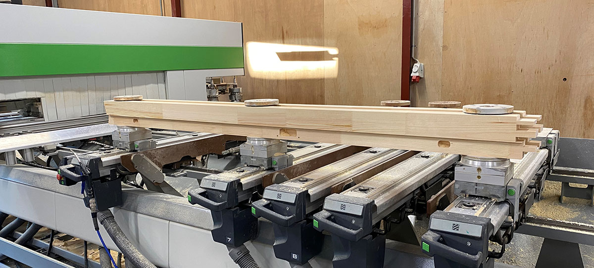 Hvis der er én ting, som Lars Corfitzen har lært igennem sine 30 år i branchen, så er det, at det gælder om at få frigjort nogle hænder i produktionen. Bearbejdningen af emner skal helst færdiggøres i én arbejdsgang, så man skal have fat i emnet så få gange som muligt. Den filosofi har også lagt til grund for en anden opgradering i 2020. Frem for at udskifte en ældre afkortersav tilkøbte man i samråd med Junget et Weinig Easystop ,som blev bygget på afkorteren.