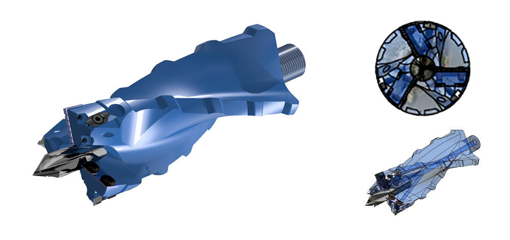 For at klare denne helt specielle opgave er der i samarbejde med Junget udviklet et borehoved, der sikrer en præcis og effektiv udboring. Finn Jensen hos Junget står bag borehovedet, som er fremstillet med spånbegrænsende skær og gennemgående luftkanaler. Derved kan man med lufttryk fjerne spåner, da de blæses tilbage i den roterende snegl og ud igennem det lange hul. Borehovedet har en diameter på Ø60 mm og arbejder bedst ved en omdrejningshastighed på ca. 3000. Det coatede borehovedet er konstrueret med udskiftelig centerbor og vendeskær.